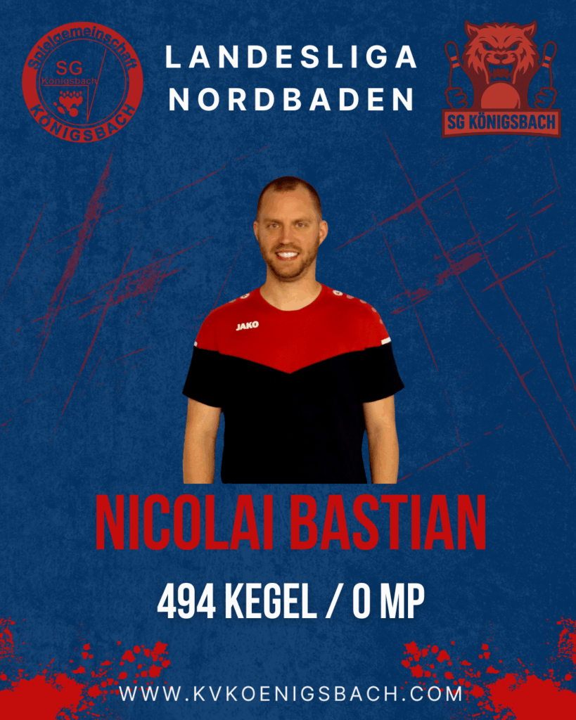 Im Start ging wie gewohnt Max auf die Bahn und dieses Mal Nicolai. Es zeigten sich zwei Duelle die sehr deutlich entschieden wurden, obwohl das Gesamtergebnis eng nach den ersten Spielern blieb. Max hatte seinen Gegenspieler im Griff und hat sein Duell klar mit 4:0 und 531 Holz gewonnen. Nicolai kam fand sich nicht mit der Anlage zurecht und hat trotz großem Willen nicht in sein Spiel auf der Anlage finden können. Mit 0:4 ging der Punkt an die Gastgeber.