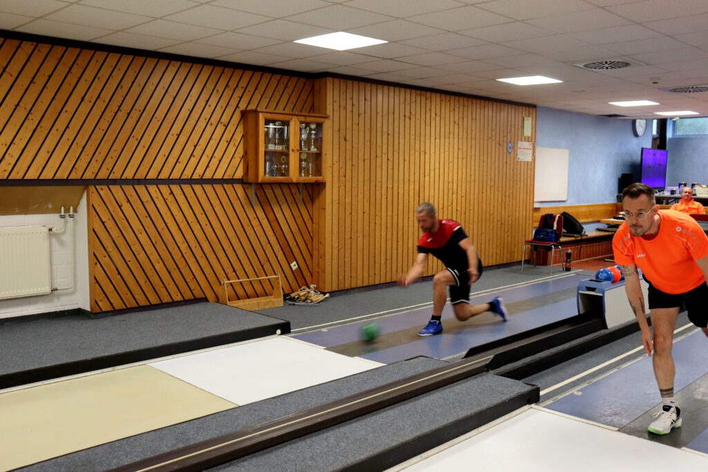 Das Spiel war ausgeglichen und es gingen Flo und Steven auf die Bahn. Flo zeigte am Samstag ein spielerisch gutes Spiel, doch der Fall der Kegelbahn hat ihm ein besseres Ergebnis verwehrt. In einem extrem engen Duell hat er bei 2:2 Gleichstand mit 529 Holz wegen 5 Kegeln das Nachsehen. Steven hat die Anlage ganz gut in den Griff bekommen und dank seines starken Wurfs mehr Glück beim Kegelfall. Mit 4 konstant gleichen Bahnen erzielte er gute 540 Holz und gewann den Punkt.
